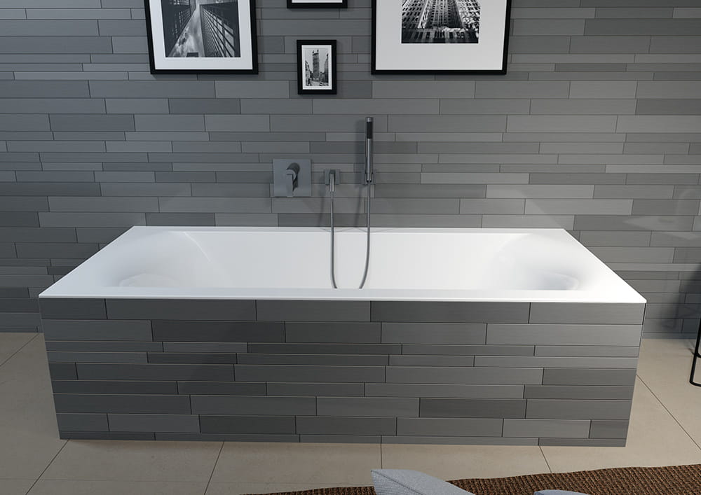 Prostokątna wanna do zabudowy z super cienkim rantem – tylko 2 cm.